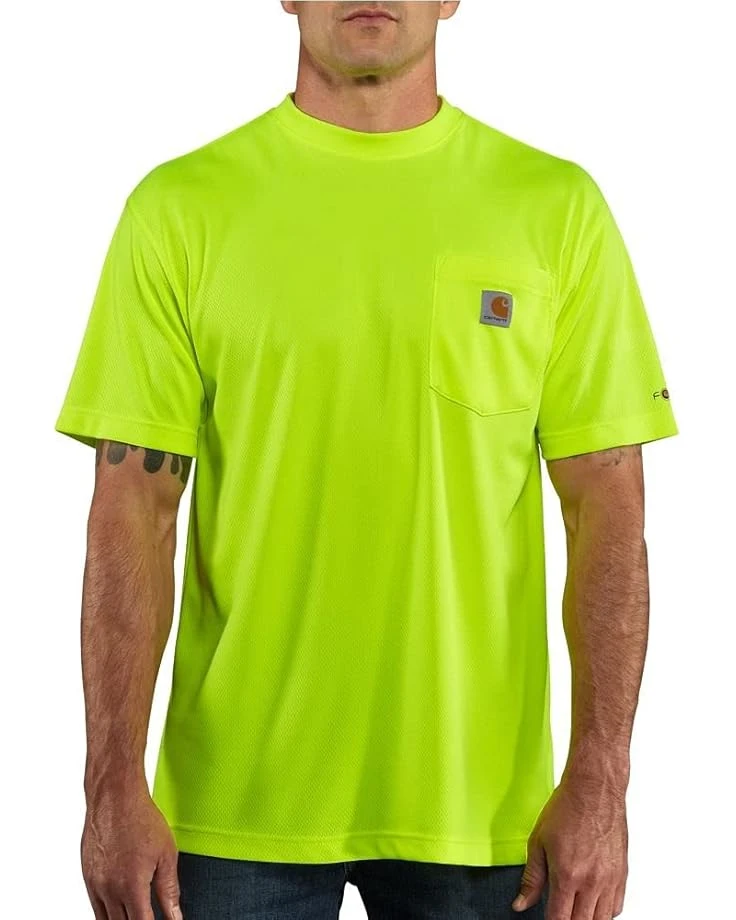 Get the job done safely and in excellent comfort wearing the Carhartt® Big & Tall Force® Color Enhanced Short Sleeve T-Shirt. Easy pullover style in bold, high-visibility design.SKU: #9539419For over one hundred years, Carhartt has been helping workers get the job done in tough conditions. This short-sleeve t-shirt is made of performance fabric that wicks away sweat, repels stains, and defeats odors. The relaxed fit gives you plenty of room to move.Ribbed knit crewneck collar, left chest pocket with brand embroidery tag.Relaxed fit shirt, short sleeves, and a straight hemline.Smooth flatlock seams and tagless label for comfort.FastDry® technology wicks away moisture for comfort.Releases stain with Stain Breaker® technology.Style number: 100493-323 (Brite Lime),