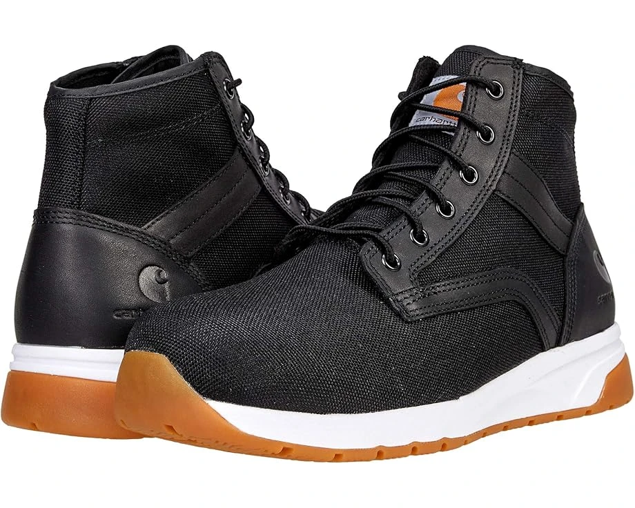 Get what you need out of your work shoes in the Carhartt® Force 5″ Lightweight Sneaker Boot Nano Comp Toe.SKU: #9543161Nano Composite safety toe meets ASTM F2413-18 I/75 C/75 EH standards and protects against incidental contact with electrical circuits of 18,000 volts or less under dry conditions.Lace up construction sneaker-like work boot.FastDry® technology lining wicks away moisture to keep you dry and comfortable.Leather upper and high abrasion resistant 1200D material.Cement construction with Carhartt rubber Force outsole.Insite® footbed is engineered to reduce foot fatigue and maximize support.All Carhartt footwear is tested for slip resistance and meets or exceeds the performance requirement set forth by ASTM standard F3445-21. All footwear is labeled as slip resistant on the outsole and the ASTM standard is identified on the inside of the shoe.Imported.Product measurements were taken using size 14, width D – Medium. Please note that measurements may vary by size.Measurements: