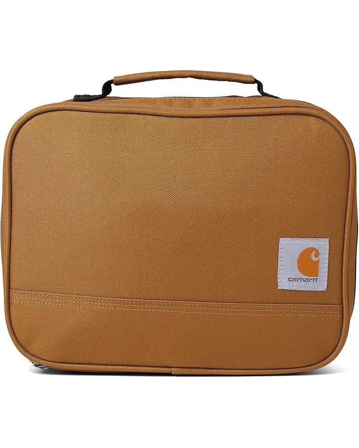 Carry food in the heavy-duty, water-repellent Carhartt® Insulated 4 Can Lunch Cooler.SKU: #9790137Compact and stylish lunch cooler made of premium quality 500 denier polyester with Rain Defender® DWR coating that keeps the box dry. Sturdy top haul handle.Zippered top closure. Fully-insulated main compartment that keeps the contents cold for more than eight hours.Interior mesh pocket for added convenience. Polyester-lined interiors. Signature brand name logo patch on the front. Imported. Measurements: