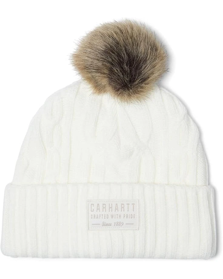 Stretchable and comfy, the Carhartt® Knit Pom-Pom Beanie complements your chilly day look.SKU: #9727081Pom-pom on the top.Folded cuff with knit-in logo detail on the front and back.Allover knitted design.This product contains faux fur.100% acrylic.Hand wash, hang to dry.Imported.