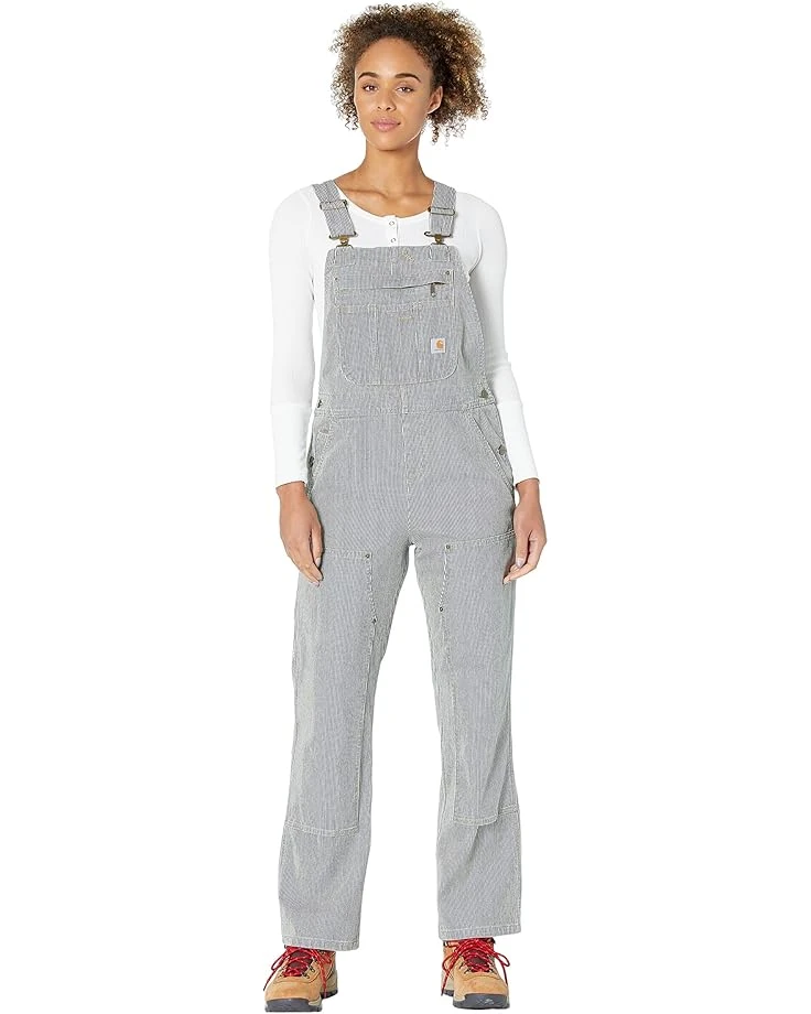 The Carhartt® Relaxed Fit Denim Striped Bib Overall will get you through the day in breathable, classic style. SKU: #9526818Adjustable over-the-shoulder straps and pockets for extra versatility.Pull-on fit with button closures at sides.Rugged Flex™ durable stretch technology – Adjustable suspenders.Striped print bib overalls with full length, bootleg cut hem.100% cotton.Machine wash warm, tumble try low. Imported.
