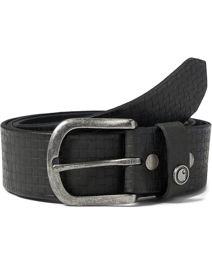 Add the Carhartt® Saddle Leather Basket Weave Belt to your ensemble for a comfortable and adjustable fit and keep your style appeal intact.SKU: #9838010Leather construction.Burnish detail on the edges.Allover basketweave design.Adjustable buckle closure with logo rivets.Leather clean.Imported.Product measurements were taken using size 38. Please note that measurements may vary by size.Measurements: